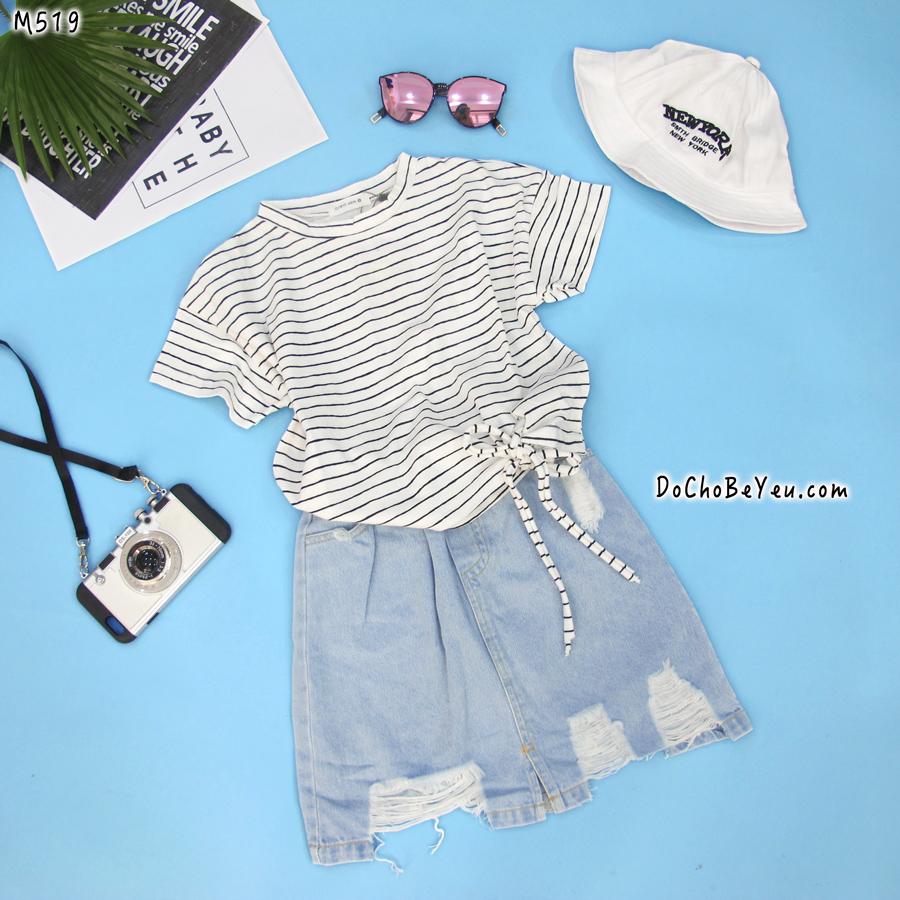 Chân váy jean bé gái lưng thun cực sành điệu và cá tính.