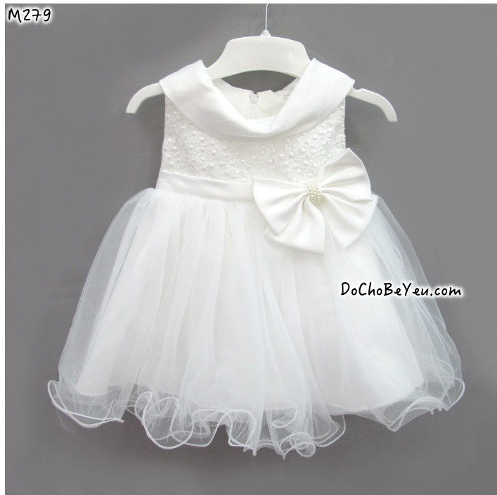 - Đầm cho bé gái sơ sinh 6 tháng đến 2-3 tuổi mẫu cổ thuyền sang chảnh. Giá 185k.