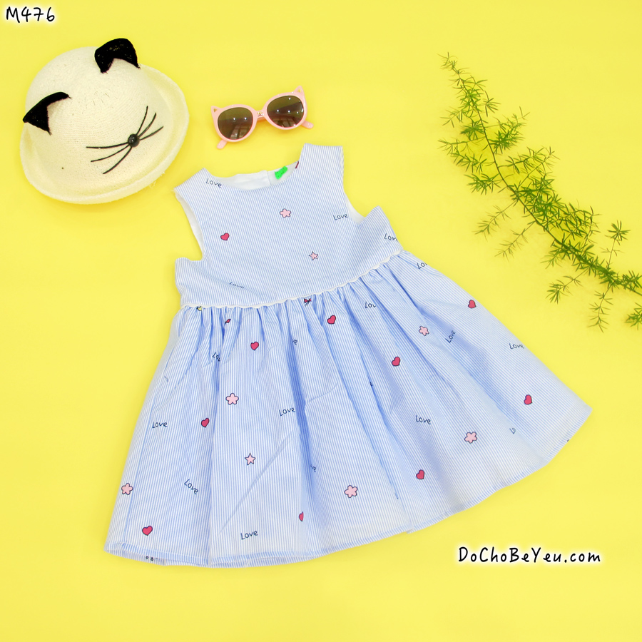 - Đầm cho bé gái 2-3-4-5-6 tuổi sọc xanh giá 165k.(Nón 90k, kính 85k ).