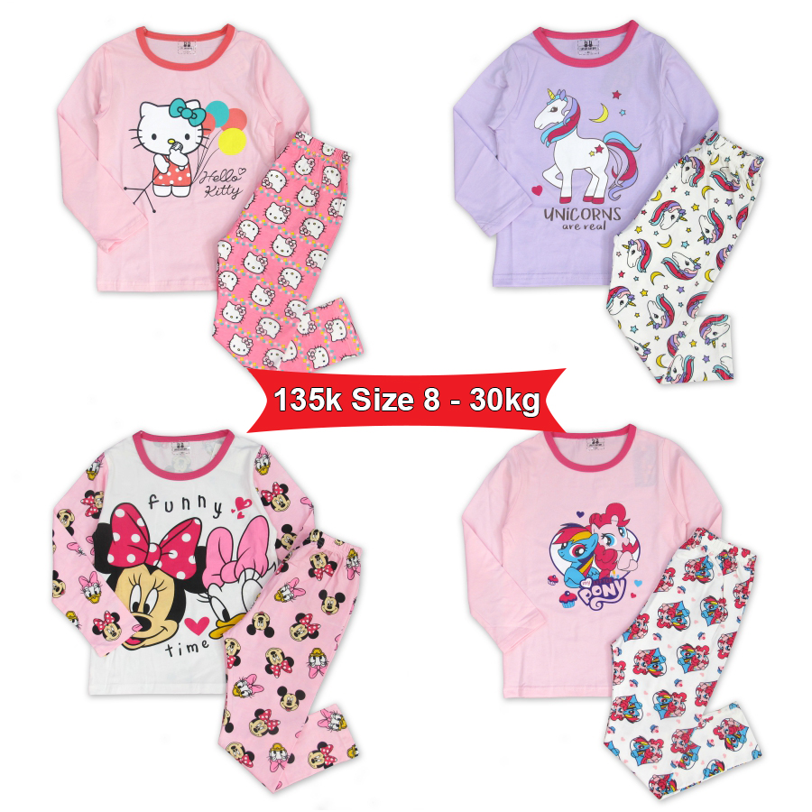 Đồ bộ cho bé gái 1-2 tuổi đến 7-8 tuổi. Size: 80-120. Giá 125k( tương đương bé 8kg -20kg ). Size 120-170.Gía 135k( tương đương bé 20kg-35kg).