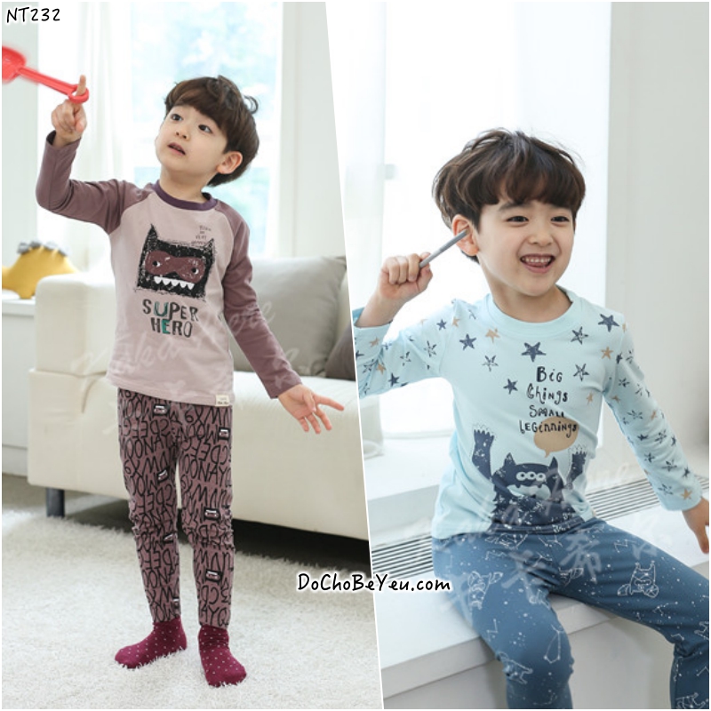 Đồ bộ tay dài cho bé trai Hàn Quốc chất vải mềm mịn, mát, rờ cực êm tay mẹ nhe.