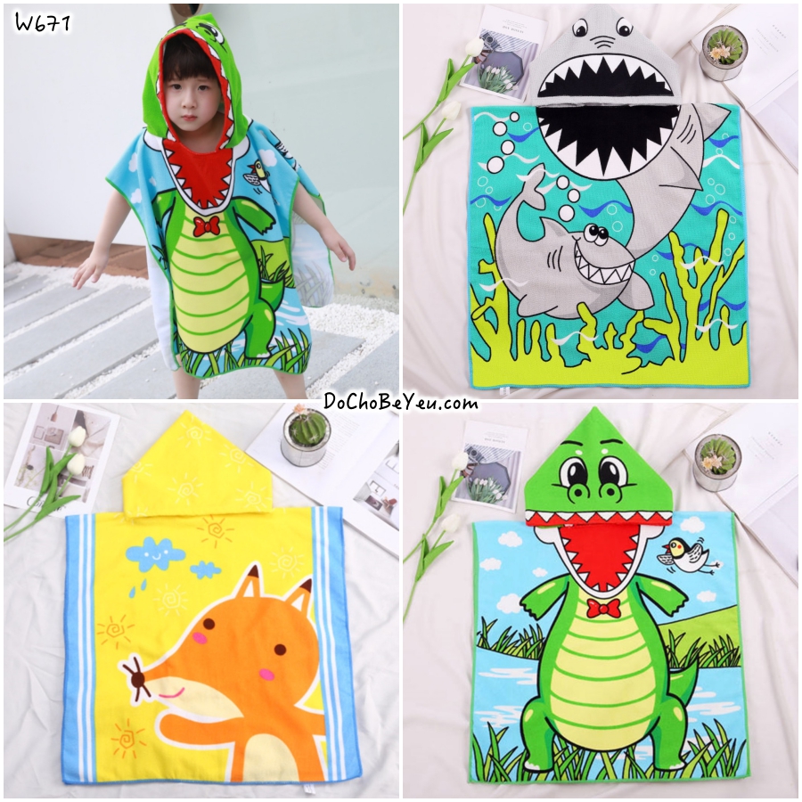 Áo choàng tắm - khăn choàng tắm biển cho bé hình thú đa dạng mẫu và chủng loại, giá lẻ từ 95k - 160k.