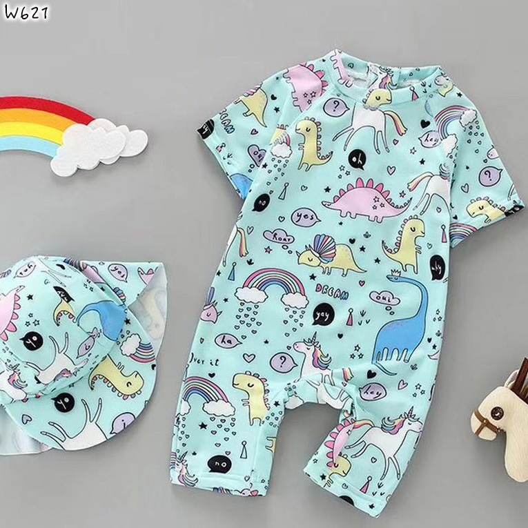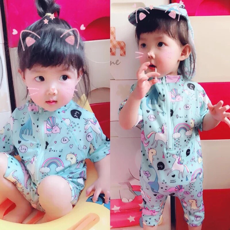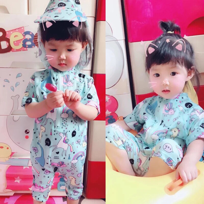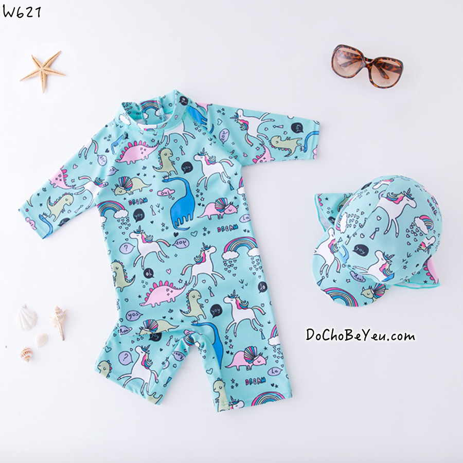 - Bộ đồ bơi cho bé gái có kèm nón, size cho bé khoảng 1-6 tuổi.