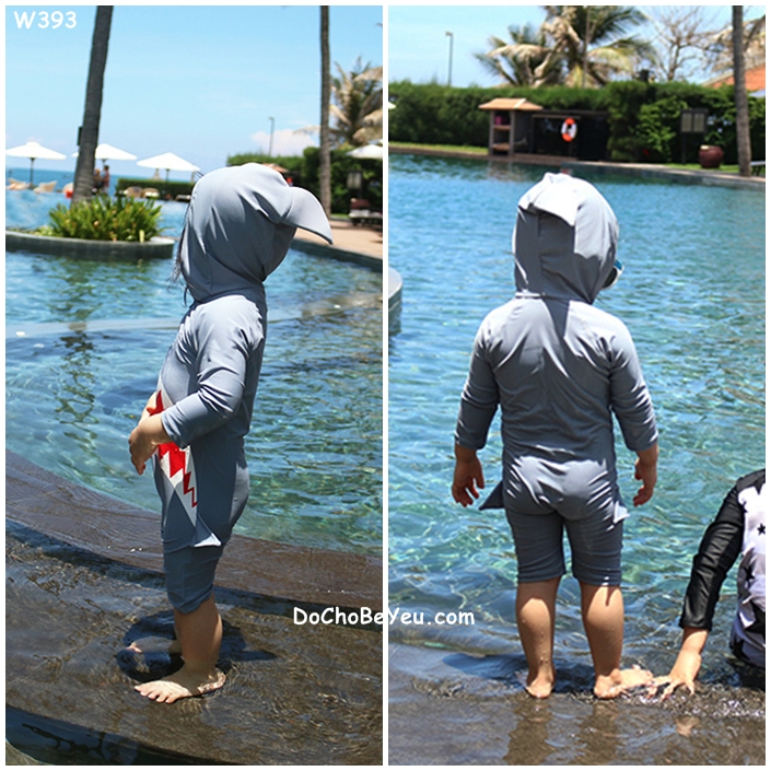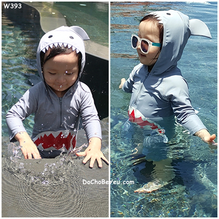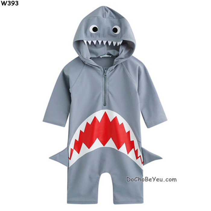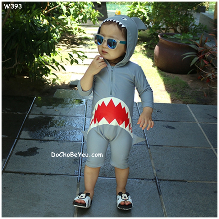 - Đồ bơi cho bé trai quần liền thân mẫu cá mập có nón và 2 chiếc vây ngộ nghĩnh 2 bên. Size 1-6 tuổi.