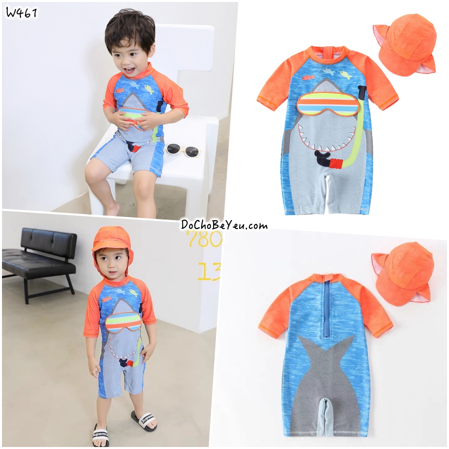 - Đồ bơi trẻ em giá rẻ TpHCM hình cá mập sinh động, dễ thương. Có kèm nón che nắng như hình. Hàng bảo đảm chất lượng từ đúng nhà máy gia công hàng xuất khẩu Korea.