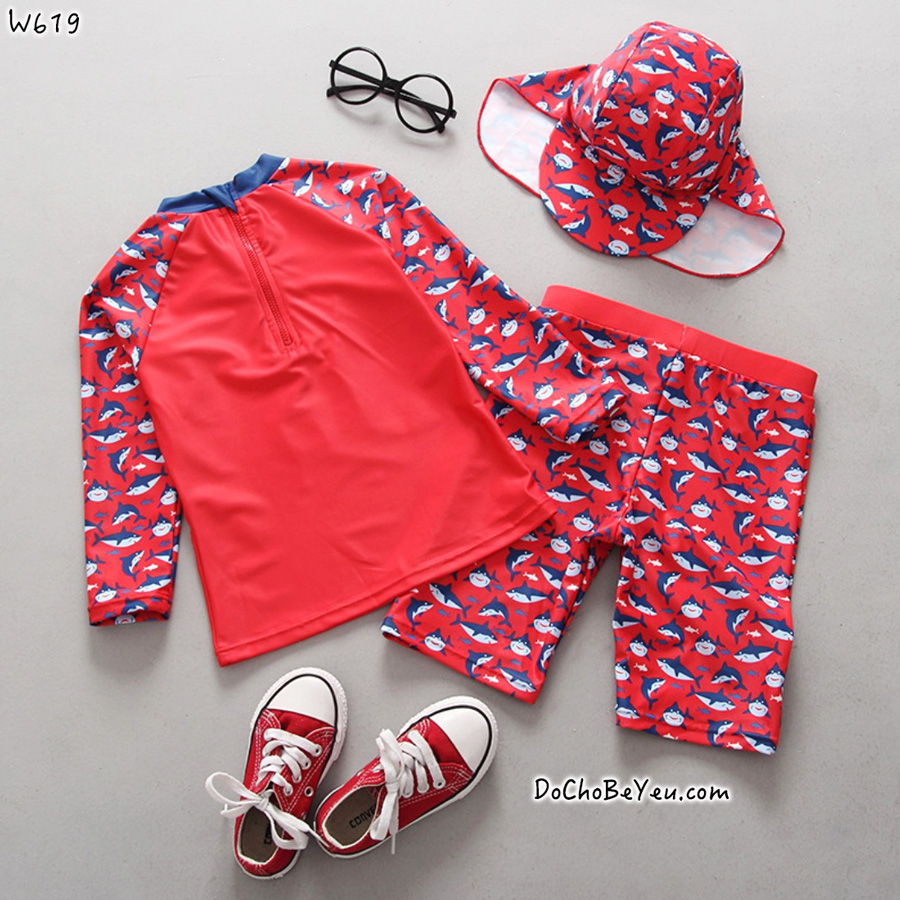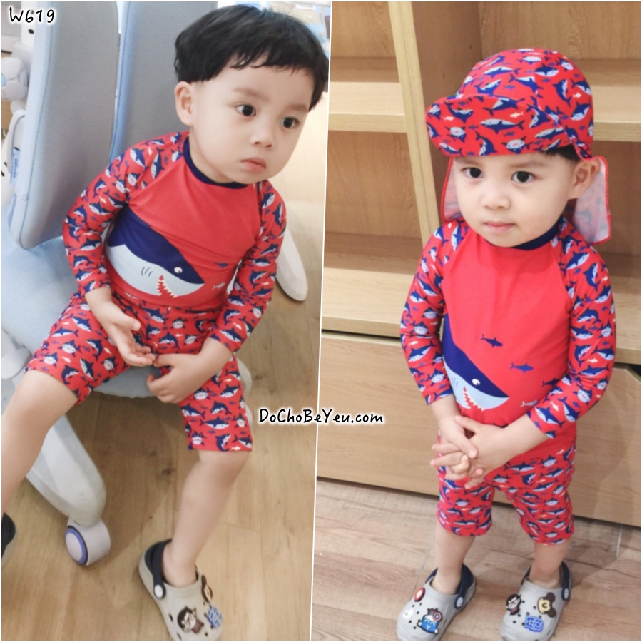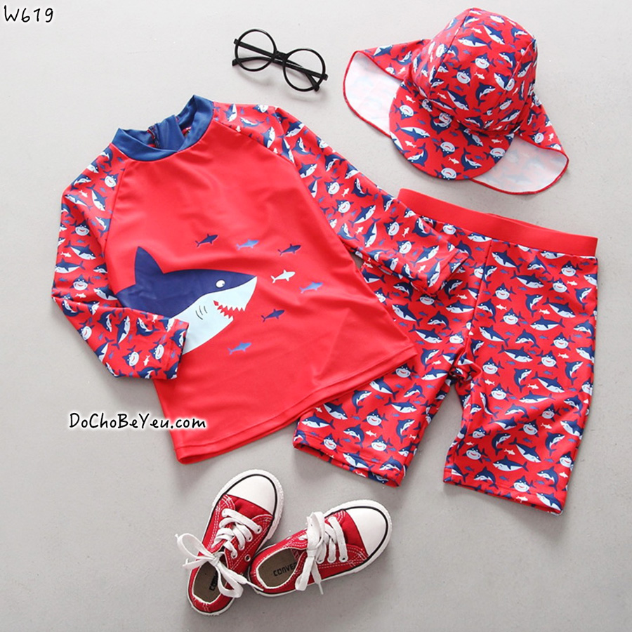 - Đồ bơi cho bé trai  tay dài 1-6 tuổi hình cá mập.