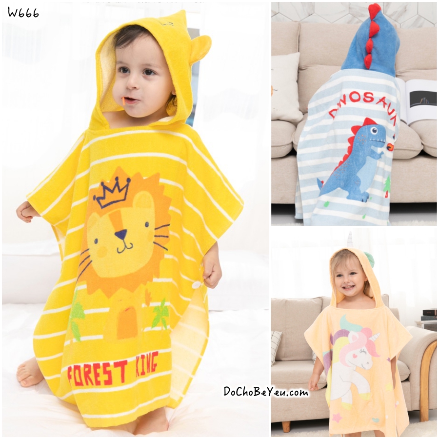 Áo choàng tắm - khăn choàng tắm biển cho bé hình thú đa dạng mẫu và chủng loại, giá lẻ từ 95k - 160k.
