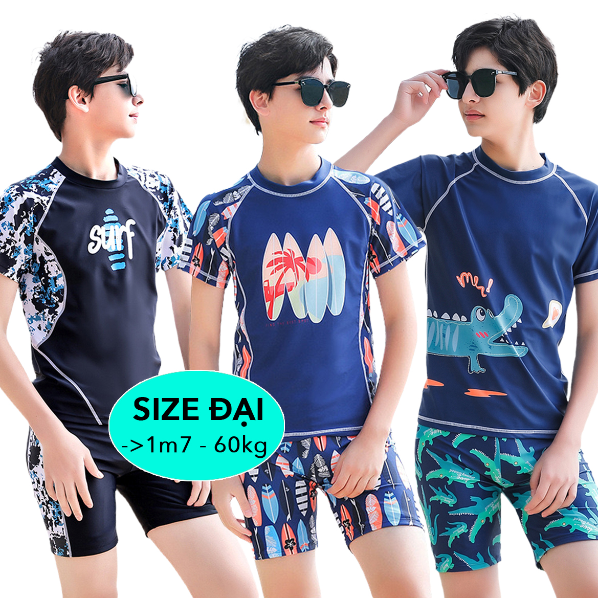 Đồ bơi cho bé trai 4-5-6-7-8-10-12-14... tuổi. Vì thể trạng mỗi bé khác nhau, nên khi đặt hàng đồ bơi trẻ em size đại, bố mẹ click chọn mẫu, sau đó sẽ để lại thông tin ở phần ghi chú về cân nặng, số tuổi, chiều cao của bé. Nếu bé đặc biệt tròn, có bụng, hãy để thêm thông tin số đo vòng mông, bụng... Nhân viên sẽ gọi điện lại tư vấn size phù hợp nhé.