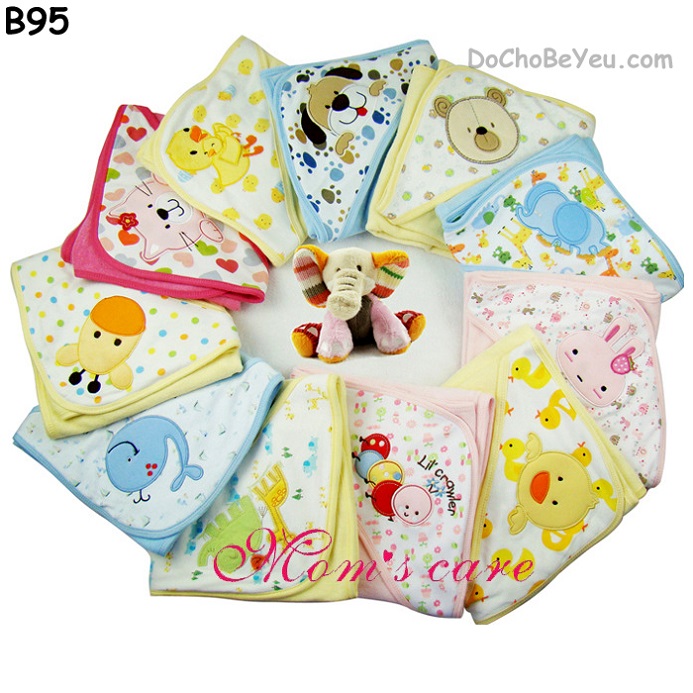 Khăn quấn bé sơ sinh có góc che ngay đầu.