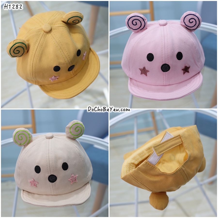 Nón kết vành mềm cho bé trai bé gái 6-18 tháng (vòng đầu khoảng 48 cm), phía sau dán tăng đơ dễ dàng điều chỉnh theo vòng đầu bé, kiểu dáng 2 tai gấu dễ thương, 4 màu sắc để mẹ lựa chọn.