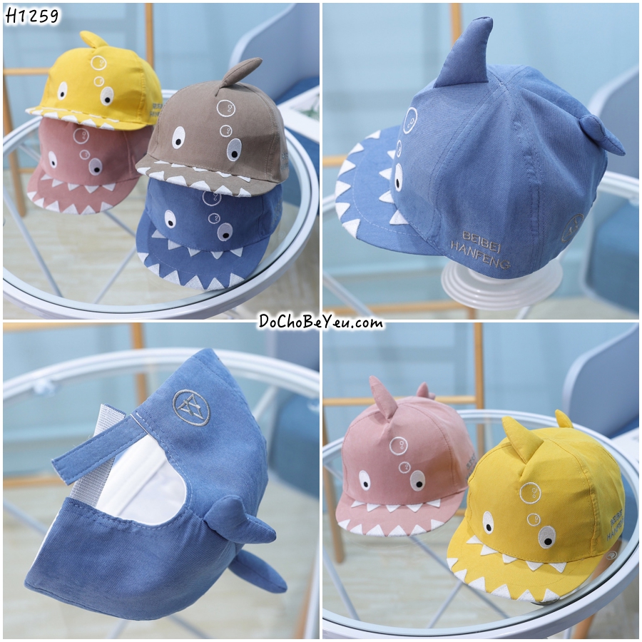 Mũ nón trẻ em 1-2-3 tuổi (vòng đầu khoảng 50 cm) kiểu dáng cá mập sừng 3D dễ thương, lạ mắt.