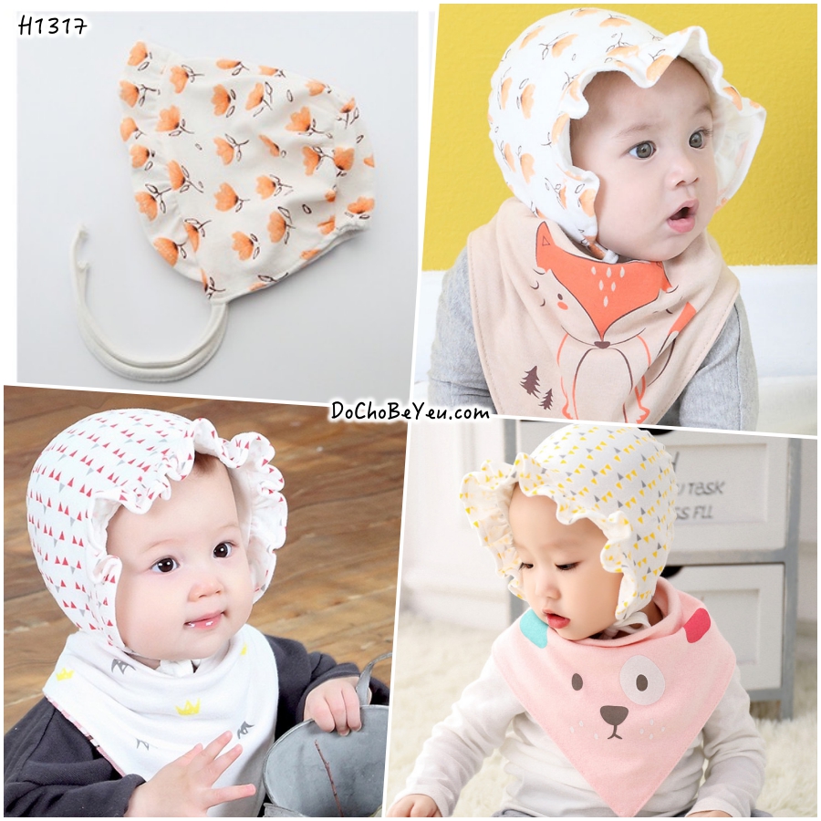 Nón cho bé gái sơ sinh kiểu xinh yêu vô cùng. Kiểu nón này được ưng nhất ở chỗ là bé nào đội vào khuôn mặt cũng trông bầu bĩnh rất đáng iu, bố mẹ tha hồ chụp choẹt lưu lại khoảnh khắc trẻ thơ cho các con.Có dây cột mẹ khỏ sợ bay, tuy mũ chùm hết cả phần sau ót giữ ấm cho bé, nhưng không hề nóng chút nào bởi chất liệu 100% cotton mềm mỏng, thấm hút mồ hôi.