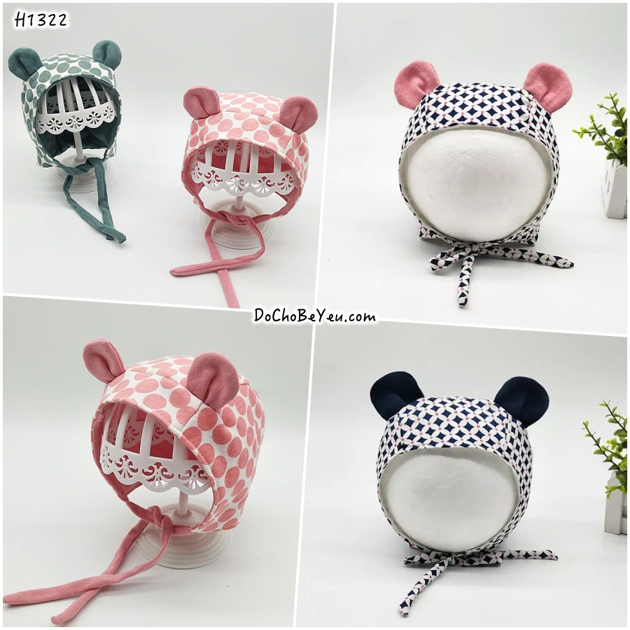 Mũ nón cho trẻ sơ sinh kiểu xinh yêu vô cùng. Kiểu nón này được ưng nhất ở chỗ là bé nào đội vào khuôn mặt cũng trông bầu bĩnh rất đáng iu, bố mẹ tha hồ chụp choẹt lưu lại khoảnh khắc trẻ thơ cho các con.Có dây cột mẹ khỏ sợ bay, tuy mũ chùm hết cả phần sau ót giữ ấm cho bé, nhưng không hề nóng chút nào bởi chất liệu 100% cotton mềm mỏng, thấm hút mồ hôi.