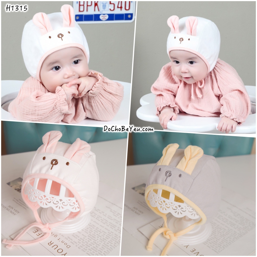 Nón cotton Hàn Quốc cho bé sơ sinh kiểu xinh yêu vô cùng. Kiểu nón này được ưng nhất ở chỗ là bé nào đội vào khuôn mặt cũng trông bầu bĩnh rất đáng iu, bố mẹ tha hồ chụp choẹt lưu lại khoảnh khắc trẻ thơ cho các con.Có dây cột mẹ khỏ sợ bay, tuy mũ chùm hết cả phần sau ót giữ ấm cho bé, nhưng không hề nóng chút nào bởi chất liệu 100% cotton mềm mỏng, thấm hút mồ hôi.