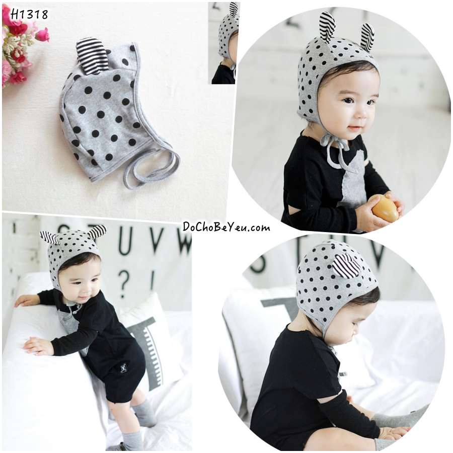 Mũ nón cotton cho trẻ sơ sinh kiểu xinh yêu vô cùng. Kiểu nón này được ưng nhất ở chỗ là bé nào đội vào khuôn mặt cũng trông bầu bĩnh rất đáng iu, bố mẹ tha hồ chụp choẹt lưu lại khoảnh khắc trẻ thơ cho các con.Có dây cột mẹ khỏ sợ bay, tuy mũ chùm hết cả phần sau ót giữ ấm cho bé, nhưng không hề nóng chút nào bởi chất liệu 100% cotton mềm mỏng, thấm hút mồ hôi.