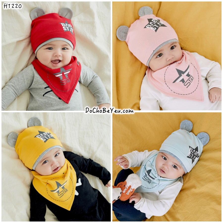 - Nón cotton Hàn Quốc cho bé (có kèm khăn làm ấm cổ), mềm mại, thoáng và thấm hút tốt, khả năng co giãn cao, họa tiết cùng màu sắc cực xinh.