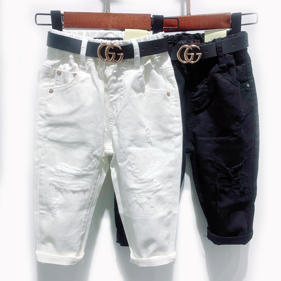 - Quần baggy cho bé chất kaki trắng đen rách lưng thun size 6-9 tháng đến 3/4 tuổi: Giá 205k. Size 3/4 - 7/8 tuổi giá 215k