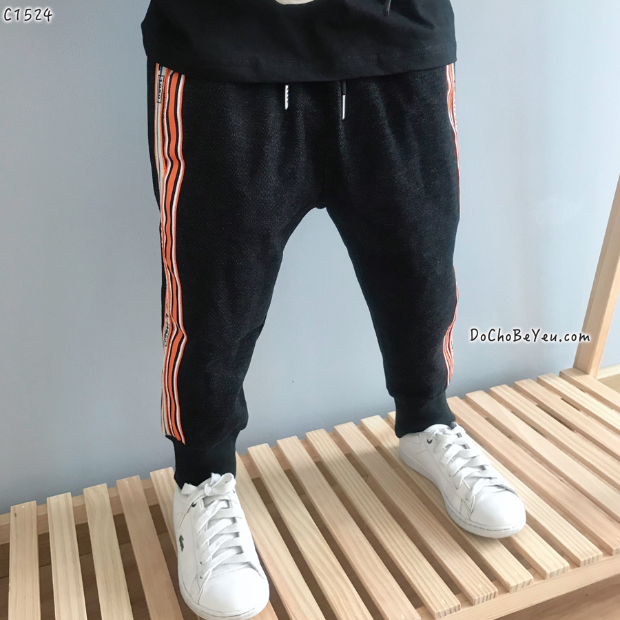Quần jogger đen sọc cam cho bé trai 2-7 tuổi: 160k chất thun co giãn thoáng mát , mẫu quần lưng thun dễ mặc giúp bé thoải mái vận động , from quần lên dáng chuẩn mẹ dễ dàng phối cùng mọi loại áo , giúp bé trong cá tính phong cách hơn .