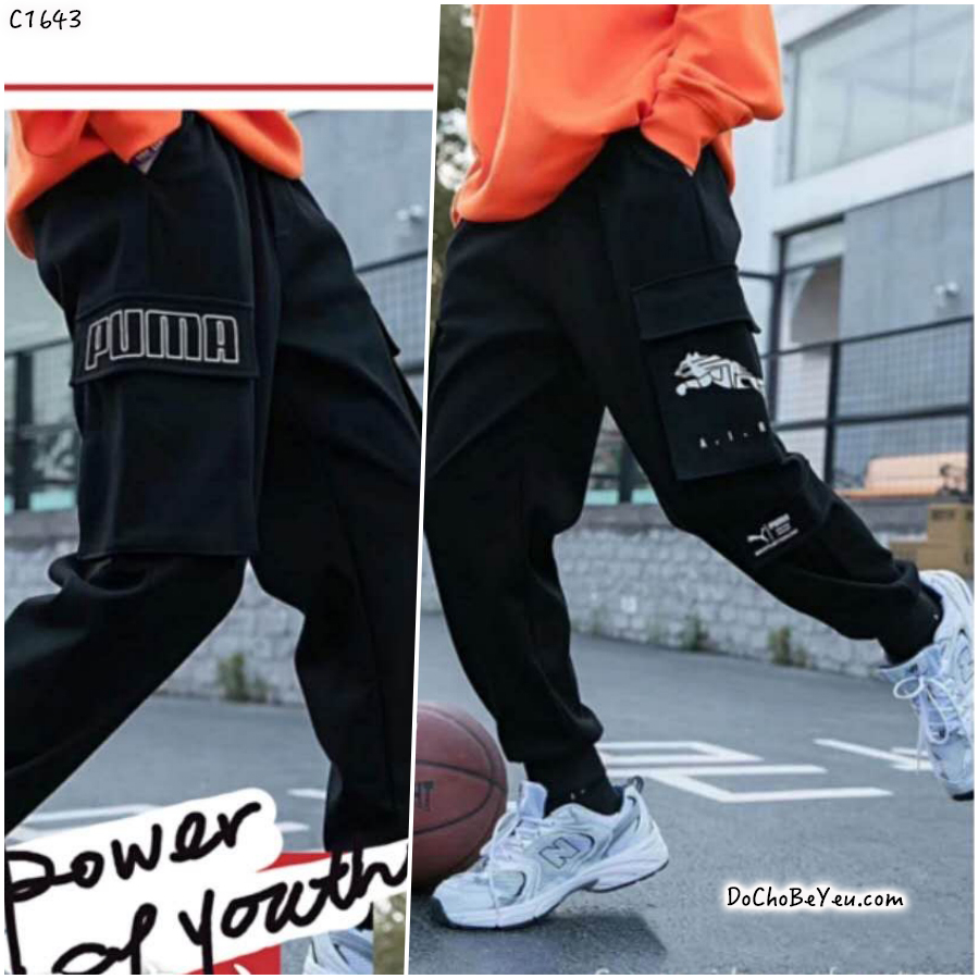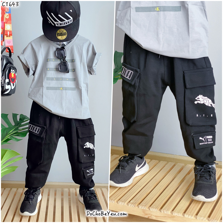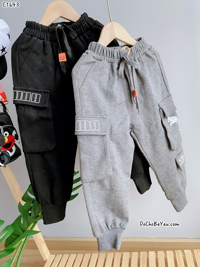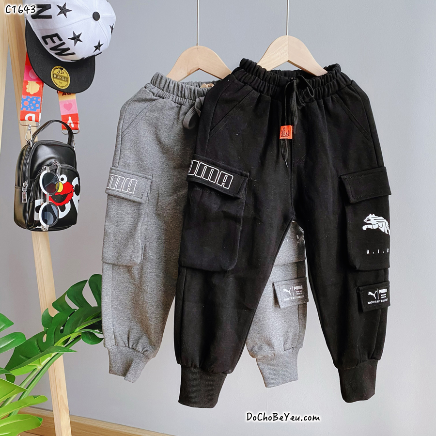 Quần jogger cho bé trai size đại 2-12 tuổi PUMA túi hộp, chất cotton xịn đẹp, dày dặn, đứng form quần, mặc vào cực chất. Có 2 dòng size 2-6 tuổi giá 180k, dòng size đại 6-12 tuổi (đến khoảng 42kg) giá 210k.