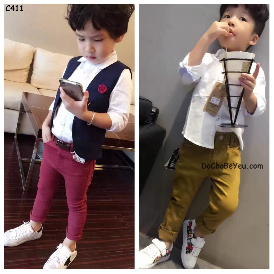 Quần kaki bé trai kèm dây nịt đơn giản nhưng cực kỳ phong cách.