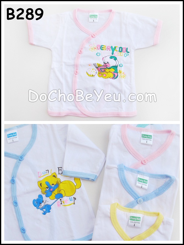 Có nhiều hình in trên áo khác nhau. Viền nhiều màu khác nhau. Ngoài ra còn có áo sơ sinh bác sĩ, áo sơ sinh chấm bi...