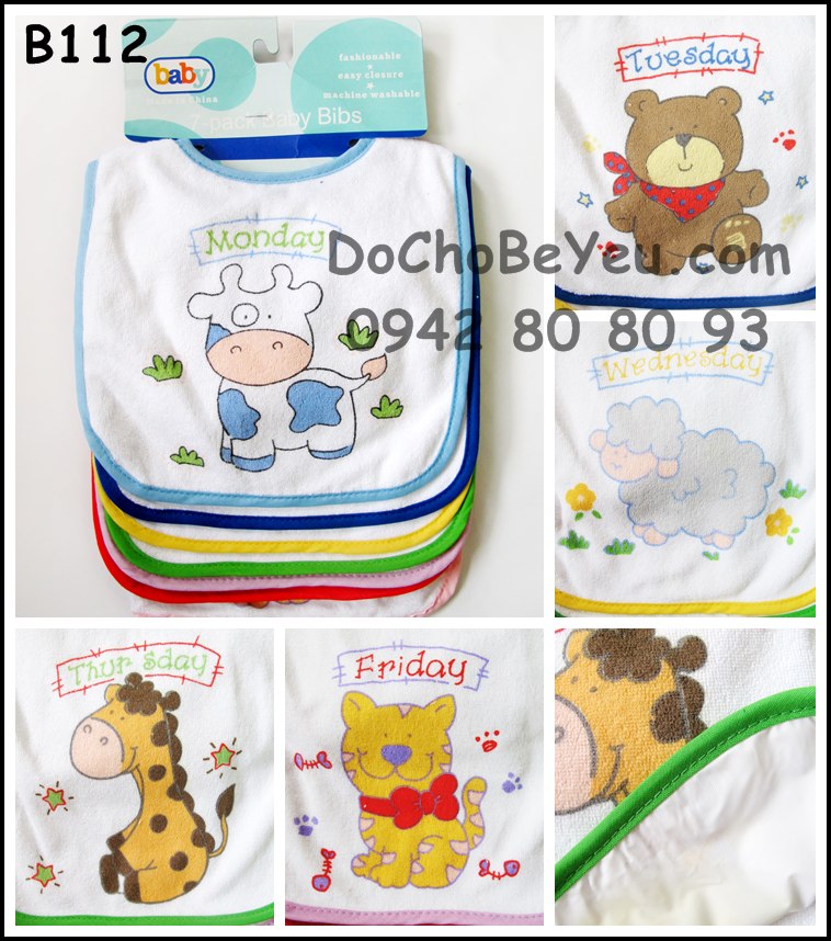 Set 7 yếm ăn cho bé là 7 ngày trong tuần.