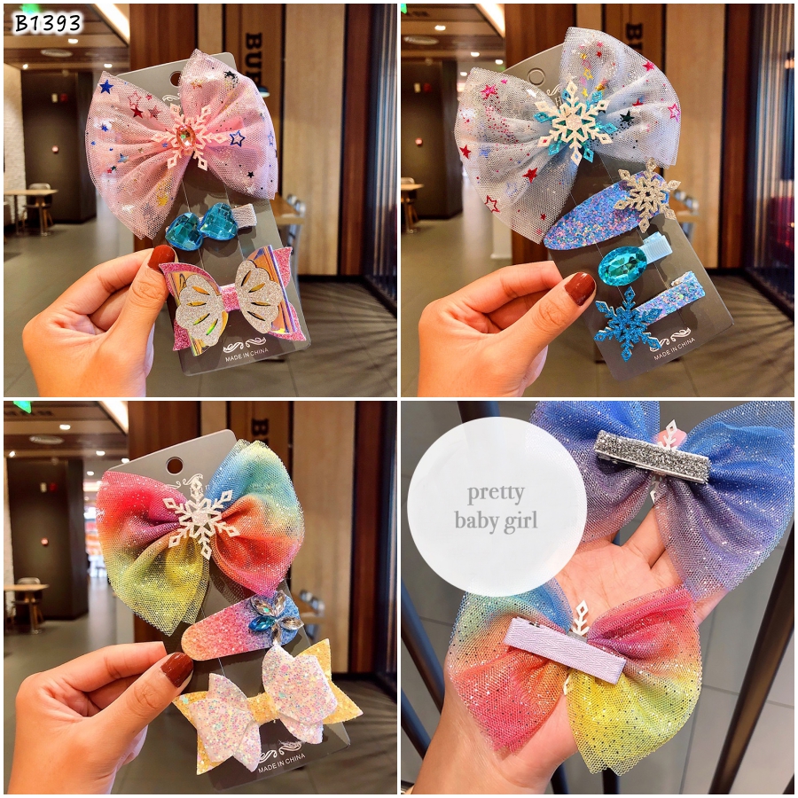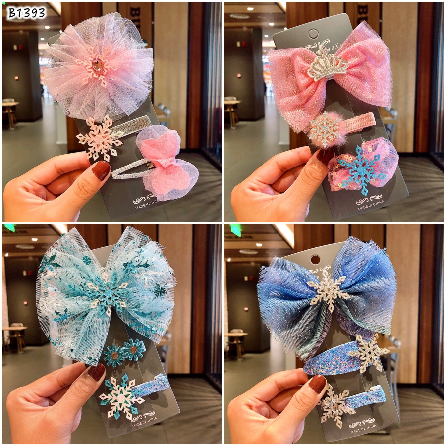 Set kẹp tóc cho bé gái 3 món dễ thương , chất voan bên ngoài cực iu và long lanh.