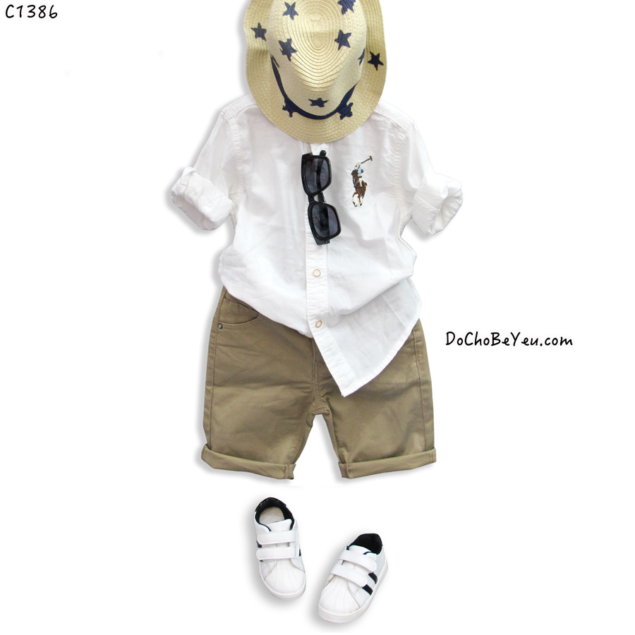 Áo sơ mi trẻ em tay dài 2-6tuổi .Áo sơ mi trẻ em tay dài 165k. Quần kaki 190k. Kính 125k. Nón 105k