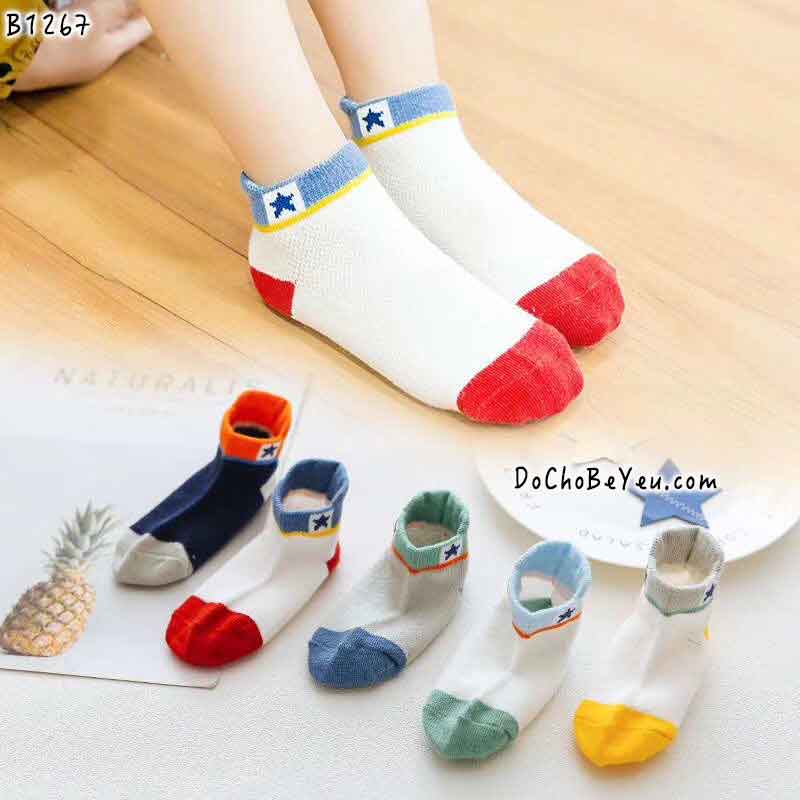 Tất vớ trẻ em Hàn Quốc size cho bé sơ sinh 12-24 tháng đến 2-3 ,3-5tuổi. Giá set 5 đôi 70k , có nhiều màu nhiều hình lựa chọn. Màu sắc, họa tiết dễ thương, thiết kế kiểu dáng dễ thương, thời trang, thoải mái vận động, dễ mang, không bó cổ chân bé.