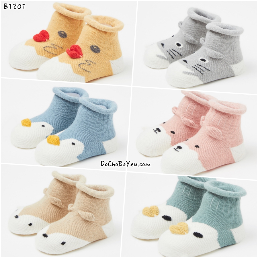 Vớ cho bé sơ sinh 3-18 tháng. Kiểu dáng hình thú 3D dễ thương, màu sắc rất tây.