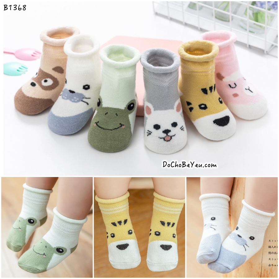 Vớ cho bé sơ sinh hình thú dễ thương, size 3-18 tháng. Hàng chất lượng chuẩn từ nhà máy chuyên tất vớ Korea, đóng gói riêng biệt từng đôi trong túi zip.