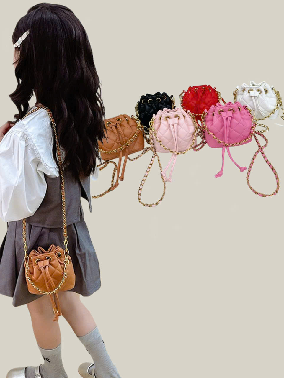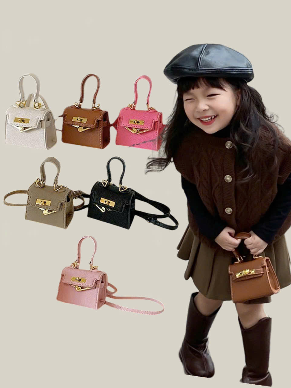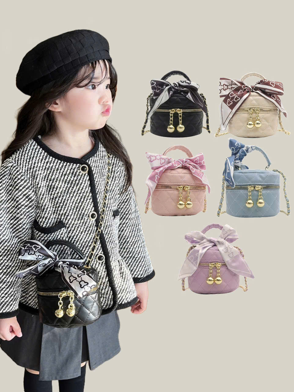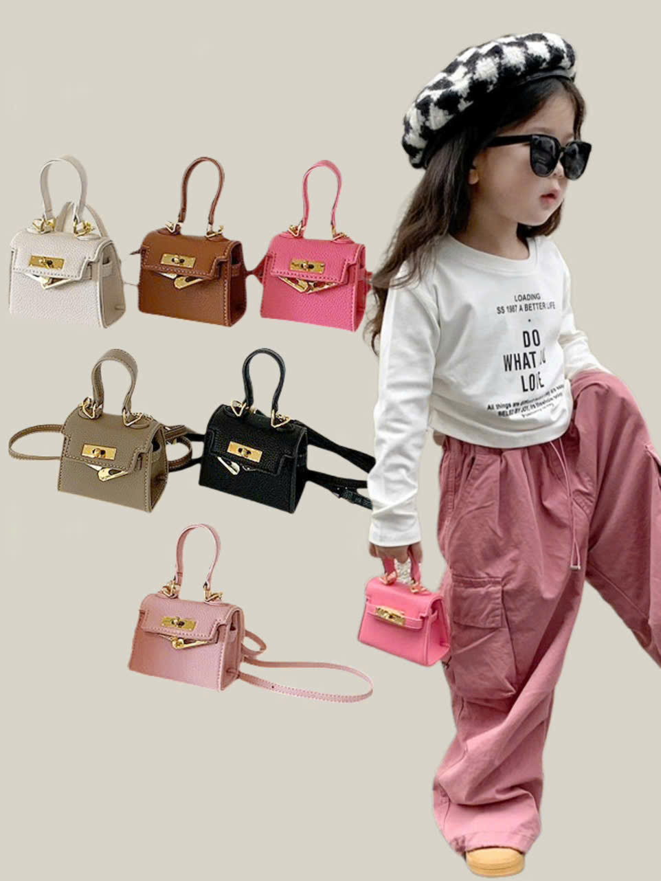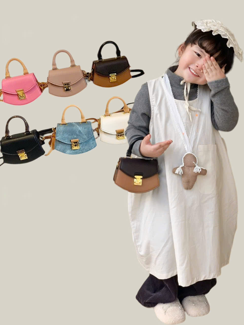 Túi xách đeo chéo cho bé gái thiết kế, kiểu dáng như của người lớn, thoả lòng cho các nàng nhỏ luôn luôn muốn bắt chước mẹ. Chỉ với 1 phụ kiện nhỏ túi đeo chéo cho bé gái mini này, trông bé sẽ thật cá tính, phong cách hơn. Mẹ dễ dàng phối với đầm hay quần jean, váy... Đặc biệt là vào dịp Tết thì nhờ có chiếc túi xinh xinh này , bé có thể tập tự quản lý giữ và bảo quản tiền lì xì của mình. Hay có thể đựng và tự giữ các đồ dùng cá nhân như khẩu trang, bịch khăn giấy, mắt kính...